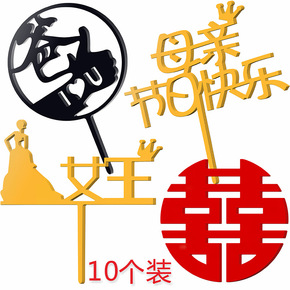 新品母亲节蛋糕插牌插旗甜品装饰妈妈生日快乐母后大人...