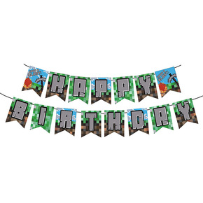 现货我的世界主题纸旗像素大战派对装饰拉旗气球男孩游...