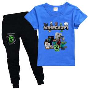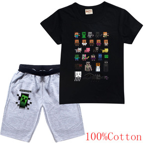 外贸卡通童装短袖纯棉T恤+长裤儿童套装我的世界Mi...