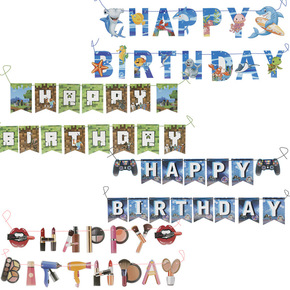 新款 我的世界游戏主题儿童生日装饰 口红海洋生日横...