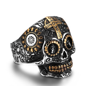 欧美朋克风格男士个性潮流百塔胡须不锈钢鬼头戒指 霸...