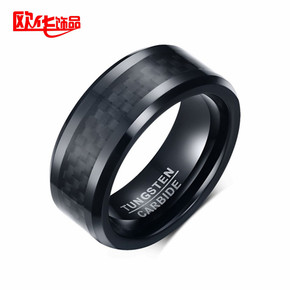 2022跨境商家欧美流行钨钢戒指电黑镶嵌黑色碳纤男...