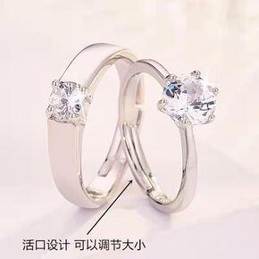 瑞兴达六爪单钻情侣戒指 仿真求婚表白对戒开口可调节...