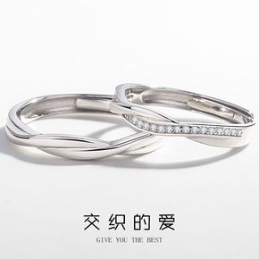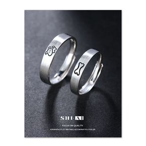 释爱S925纯银小狗骨头情侣对戒开口调节戒指地摊七...
