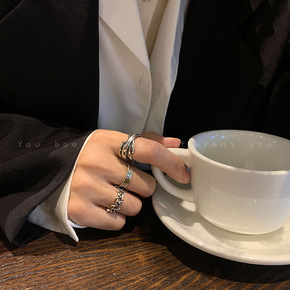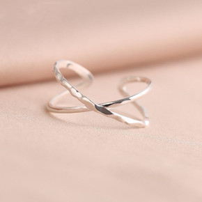 小众设计几何开口纯银戒指女日潮人学生个性交叉食指环...