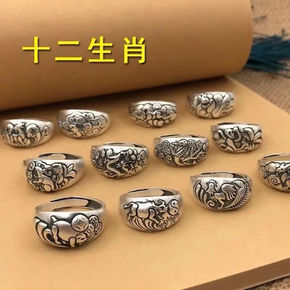 925素银龙鳞男士复古开口食指指环潮流个性中指戒指...
