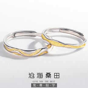 守护情侣素银戒指天使之翼翅膀对戒泰银女戒羽毛开口男...