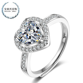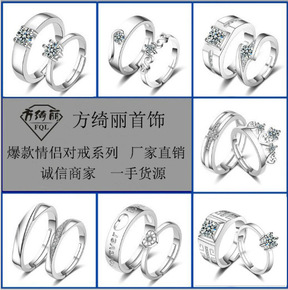 直播热销欧美手饰品开口情侣戒指女韩版锆石六爪皇冠婚...