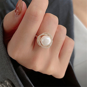 品牌:饰亿客 尺码:开口可调节 韩国风:微镶珍珠戒指女开口戒时尚个性夸张食指指环 风格:韩版...