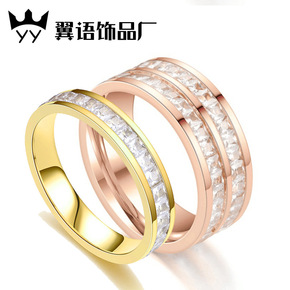 日韩流行小方形锆石钛钢镶钻戒指不锈钢情侣戒指批发抖...