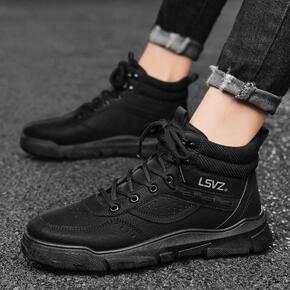 灰色马丁靴男高帮英伦风工装冬季男鞋秋季潮流防水户外...