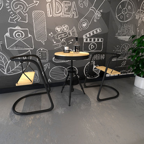 工业风酒吧桌椅清吧音乐餐吧烧烤店西餐厅咖啡厅实木美...