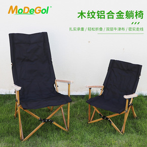 牧蝶谷户外折叠躺椅加高木纹铝管椅户外野营椅子折叠便...