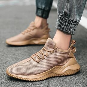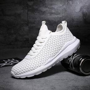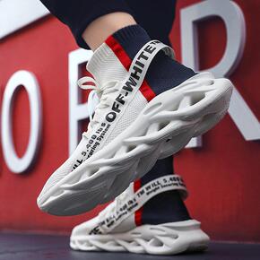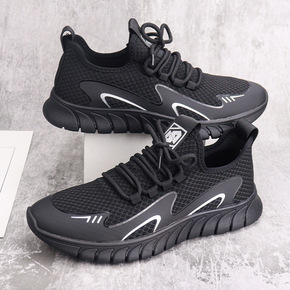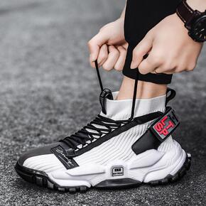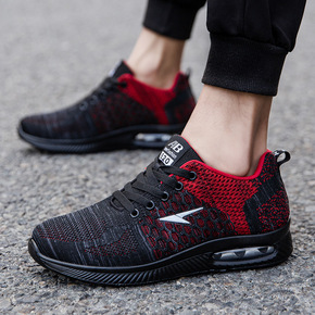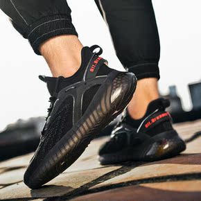 夏季透气薄款运动鞋莆田系男鞋高帮飞织跑鞋爆米花减震...