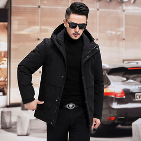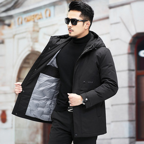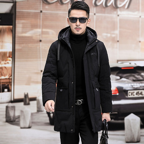 高端冬装新款男士商务琪蒙口羽绒服中长款加厚连帽情侣...