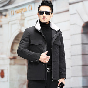 羽绒服男冬季新款单排扣宽松中老年男士羽绒外套翻领宽...