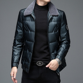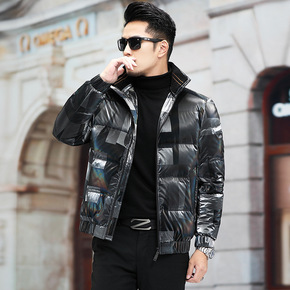 轻薄羽绒服男冬季立领毛领韩版亮面保暖潮流短款白鸭绒...