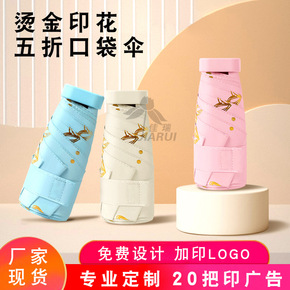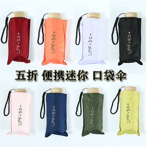 烫金印花扁五折6骨防晒遮阳太阳伞女迷你口袋伞胶囊黑...