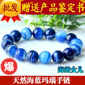 【赠送鉴定书】海蓝玛瑙手链 海蓝天珠玛瑙宝石手链 ...
