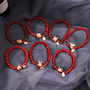 本命年鼠红玛瑙新年手链男女情侣闺蜜手串简约个性百搭...