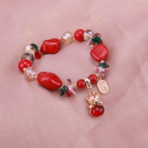新款虎年玛瑙石手链 女韩国东大门水晶手串 本命年福...