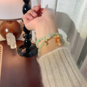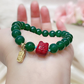 笑口常开招财纳福绿玛瑙手链复古民族风朱砂招财猫玛瑙...