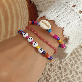 波西米亚彩色串珠手链贝壳love字母米珠手串三件套...