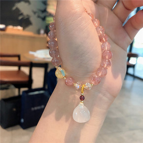 韩版个性草莓晶简洁手串手链少女学生时尚玉石荷花莲子...