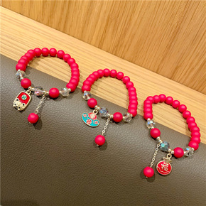 小老虎福袋吊坠转运红色水晶手串钱币元宝刻字串珠手链...
