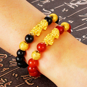 仿彩色玛瑙手链 金珠貔貅手链情侣手串批发义乌小商品...