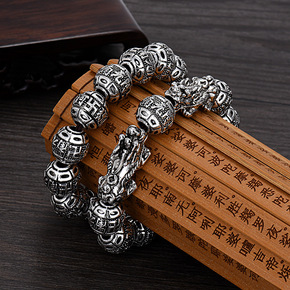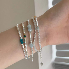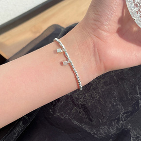 通体925纯银碎银子手链女切面银珠闺蜜手串2022...
