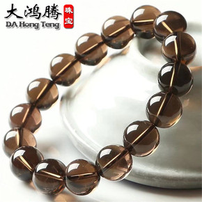 鸿腾珠宝 天然高冰玻璃体茶晶手链女男款 大颗粒水晶...