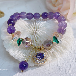 天然紫水晶手链女微镶锆石水晶花朵手串高级感闺蜜手饰...