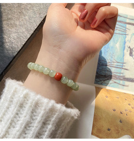 天然和田玉手串晴水老型珠搭配南红柿子红女生款时尚秀...