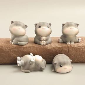 5款猫咪手办模型 卡通可爱小猫咪公仔玩具微景观汽车...