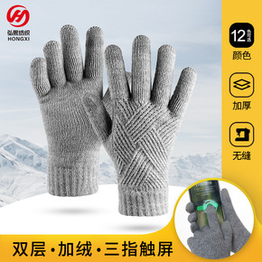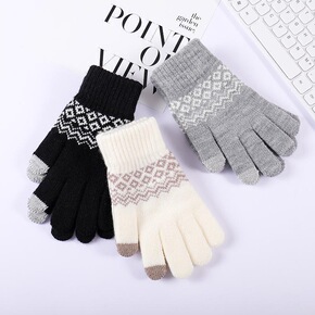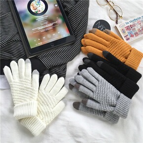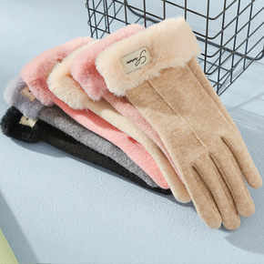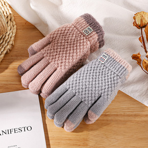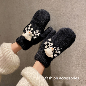 新款针织卡通手套毛绒防寒触屏手套女冬保暖加绒加厚学...