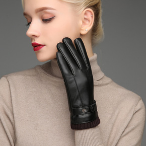 厂家直销 进口小羊皮触屏保暖时尚女士真皮手套...