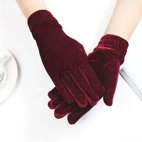 金丝绒松紧罗纹口手套 电动车秋冬防寒保暖时尚女士金...