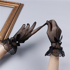 韩式黑色复古性感蕾丝化装舞会酒会手套镂空花边婚庆礼...