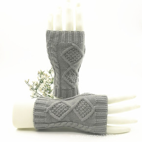 秋冬男女士毛线手套菱形提花麻花纹半指手臂手套保暖短...