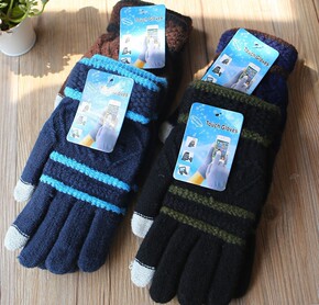 手套女冬季触屏加厚色毛线针织拉绒保暖情侣学生韩版可...