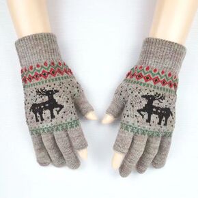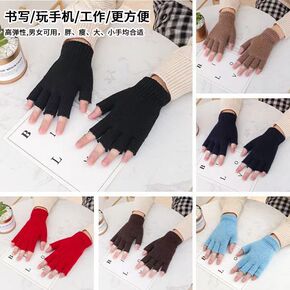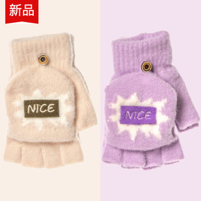 新款冬季保暖办公女士出行 五指半指翻盖两用 针织女...