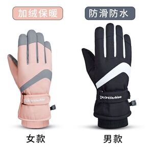 全掌触屏滑雪手套冬季女加绒加厚保暖防寒棉手套骑行电...