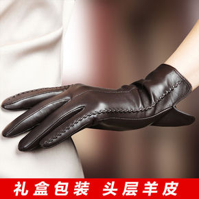 小羊皮手套女士冬加厚加绒短款开车骑车韩版海宁羊皮手...