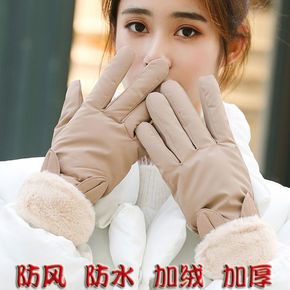 羽绒手套棉手套女冬季保暖防寒加绒女士加厚骑行电车防...