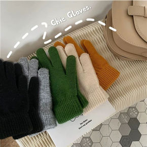 针织纯色洞洞手套韩国新款触屏露指毛线女冬季五指分指...