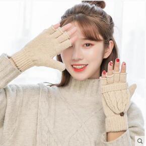 手套女冬 翻盖可爱两用羊毛手套 秋冬保暖半指半截漏...