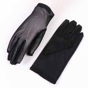 氨纶手套薄 女 雪尔防晒黑白高弹力珠宝手套 礼仪手...