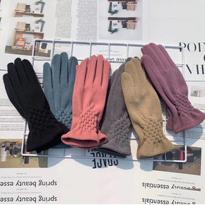 优美符号跨境热卖经典女式不倒绒四扣加绒加厚骑车触屏...