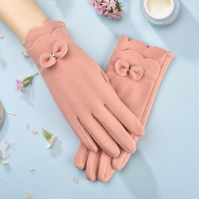 秋冬季兔绒保暖女士手套麂皮绒加绒加厚骑行学生触屏德...